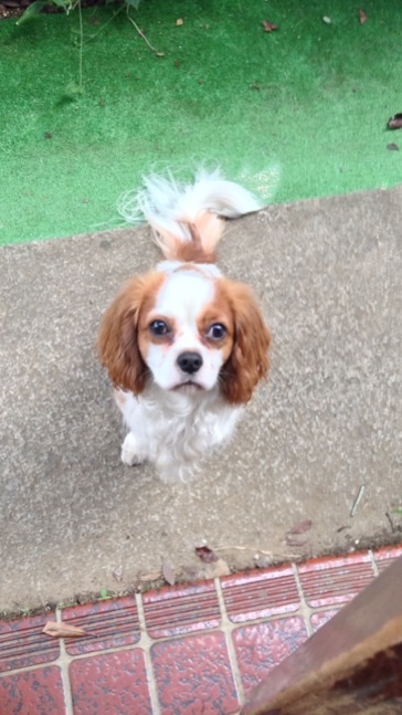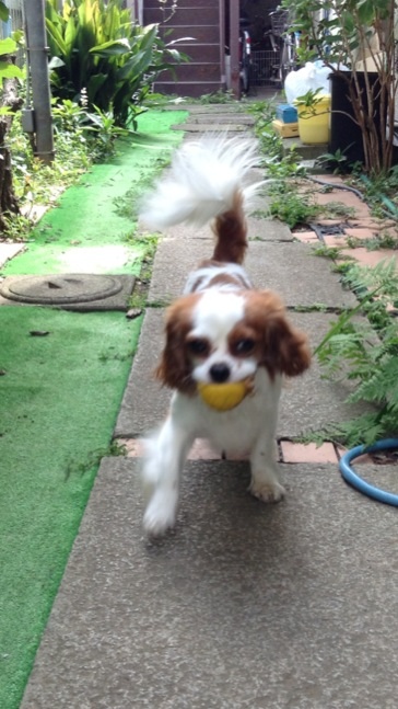 化粧終わってお着替えしたら、次は自分の散歩タイム♪とわかってるコナンはシッポマッハ!で待機!