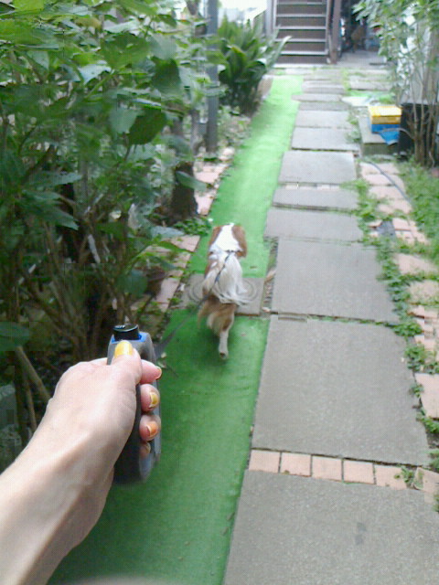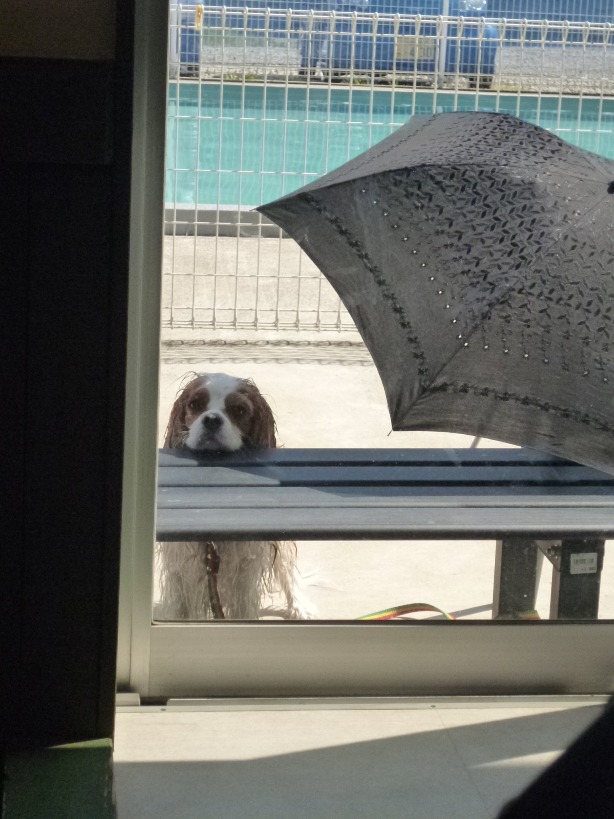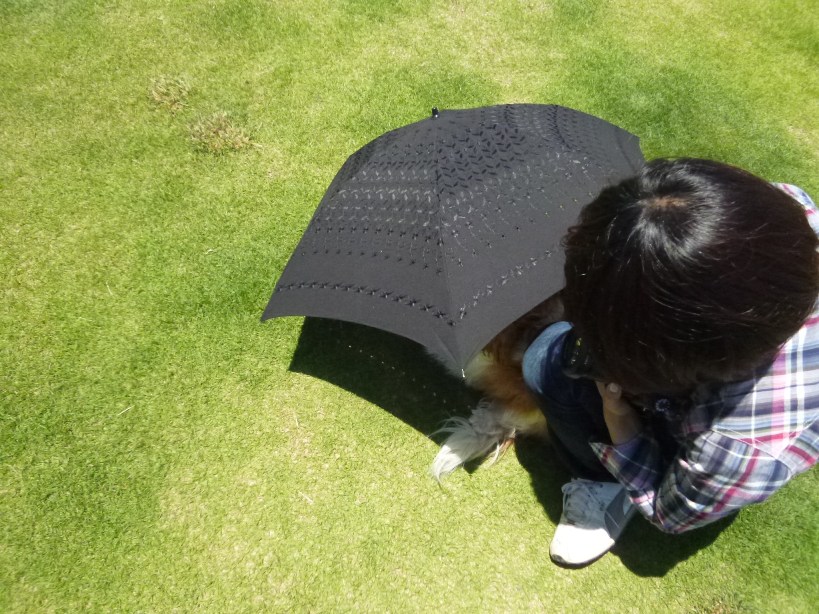 暑すぎて日傘下に避難中・・の・・チャムくん。。笑
