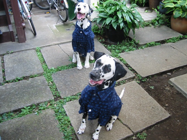 飼い主の要望で着させられ?暑そうな2ワン。・・爆爆