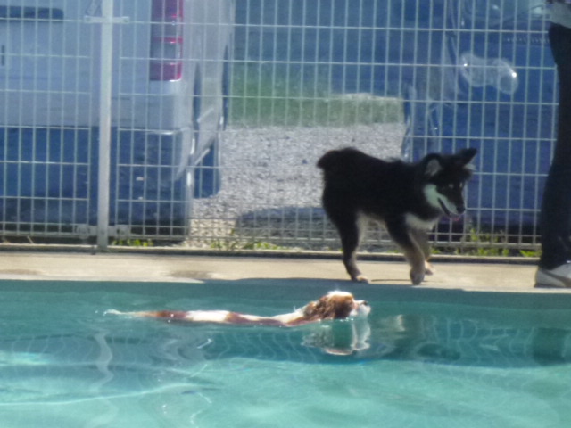 昼食後もまったり室内ランで遊んで、、チャムくんとポムはプールサイドへ・・もしかして?入るの??と思っていたら~~