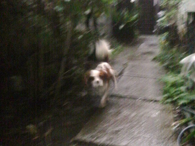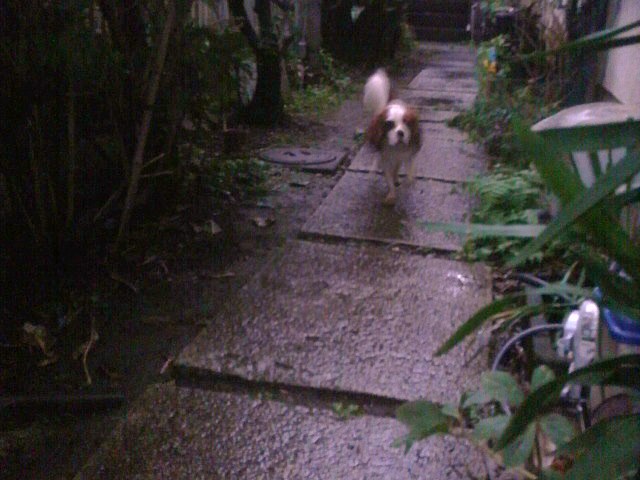 いつものように。お散歩から帰って、玄関前をウロウロ~♪散策~♪