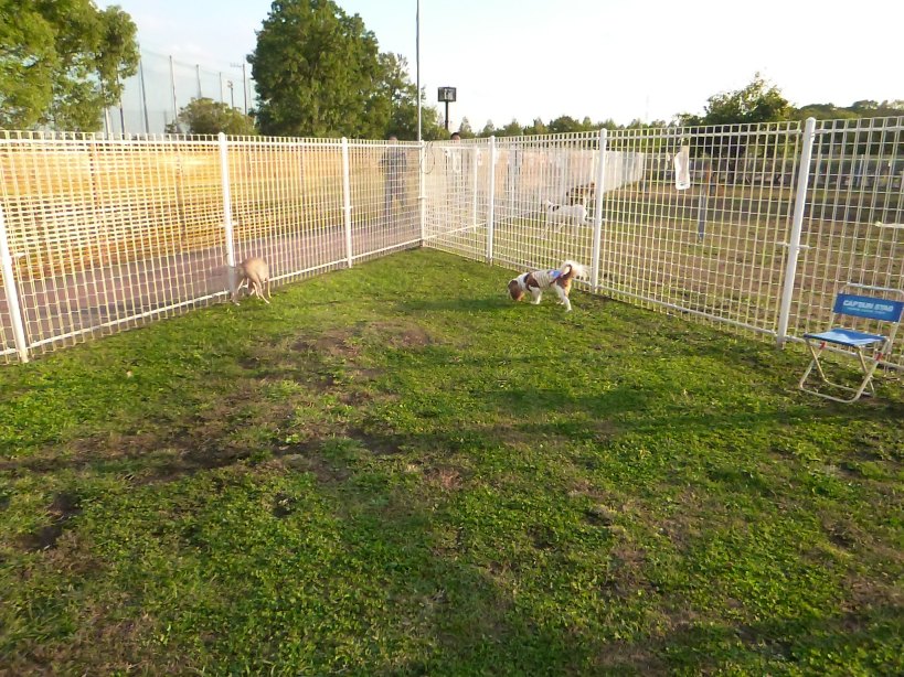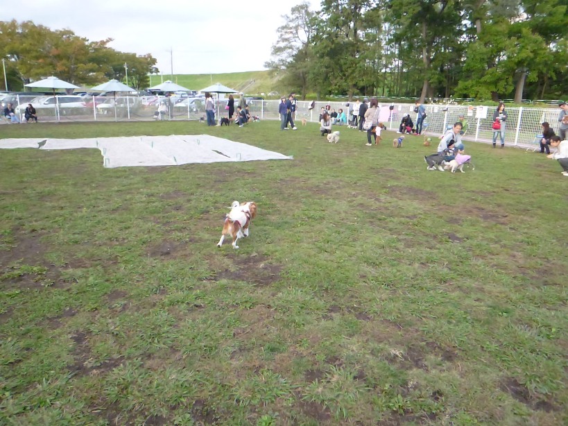 ひろ~い公園にドッグランがあって、事務所で狂犬病済み証を見せて登録手続きをして、、、