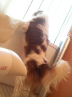 ちょうど外からの風が気持ちよくてドライヤー暑すぎない感じで嫌がりもせず。。これは便利?笑