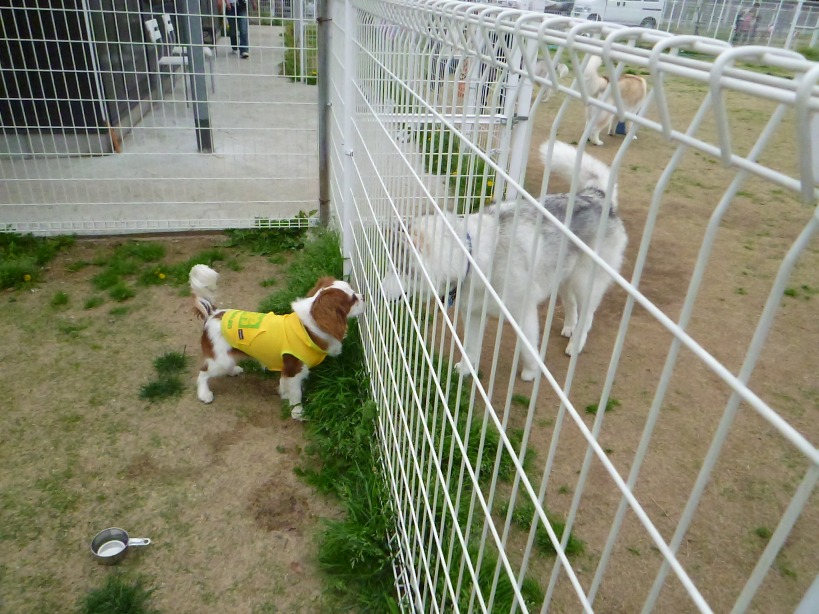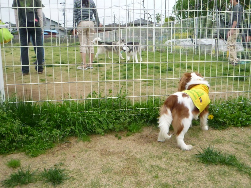 さすがに今日はGWなので、、いろんなワンちゃんが大集合!で・・お隣のランには・・ハスキーさんがいっぱい・・・
