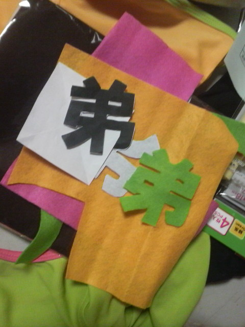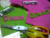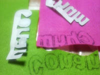 これです・・笑 PCでフォント決めて印刷して、フェルトに写して・・・フェルトカット。ボンドで仮止めして~