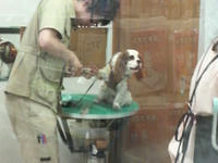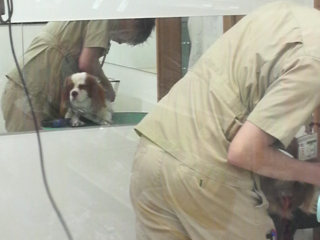 左の台でお姉さんがカットを始めると・・